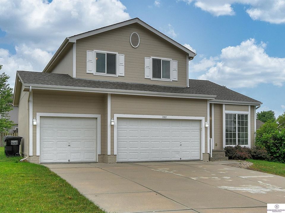 Contract Pending Welcome home to this home with 3 bedrooms, 4 bathrooms and a 3 car garage on a large corner lot. The amenities plus the park across the street will please the picky buyer. Basement has a large great room with egress windows, this room can also be a large bedroom, plus a flex room for your movie room, office, or use your imagination. Home has some new paint inside, new windows in 2 of the bedrooms, Exterior of home painted in May 2022. Ac is newer with new steps on back stoop. If you are looking for a home with extra space inside and out. This home is close to the lake, plus close to schools, entertainment, hospitals, Offutt and the interstate. Schedule showing soon. Showings start July 8th.AMA