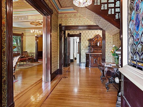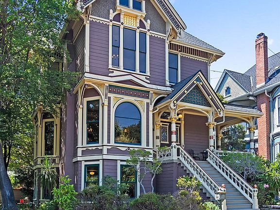Located in one of Alameda's most sought-after neighborhoods, this exceptionally spacious and architecturally significant Gold Coast home was designed by prominent Alameda architect Charles Shaner in 1890, the architect of choice for many wealthy Alamedans at that time. Meticulously preserved both inside and out, this stunning home offers 5 bedrooms, 3.5 bathrooms, a grand entrance hall, expansive formal living and dining rooms, an eat-in kitchen, a spacious level-in family room with a private entrance, and an attached garage. Exceptional Victorian details include high tray ceilings with layered crown molding, original fireplaces, hardwood floors, picture rails, bay windows, ornately carved banisters/door and window trim, stained glass windows, and so much more. Updated/remodeled kitchen + bathrooms, upgraded electrical/plumbing, a custom wine cellar, a backyard deck for entertaining, a new roof and newer foundation. The expansive lower level has conversion potential for an in-law suite, a wonderful home office or teen space. Located in the heart of the Gold Coast, the home is just 2 blocks to Franklin Park/Elementary School and just 1 mile to downtown Park St. Spectacular in every way, this exceptional Queen Anne jewel presents a rare Alameda home ownership opportunity!