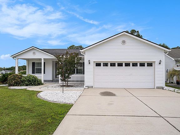 Adorable home in one of the most popular 55+ communities on the Grand Strand! This three-bedroom, two bath home features an open concept living and dining room with breakfast bar, vaulted ceilings and work island in the spacious kitchen. The Primary bedroom has a large walk-in closet and en-suite bathroom and is on the other side of the home from the other two bedrooms and second full bath. Enjoy the sunrise from your front porch or the sunset from your lovely back deck that has just been given a full makeover! No need to worry about keeping up your lawn because landscaping is included in your lot lease! All appliances, including the washer/dryer, convey with the sale. New roof in 2023 and new HVAC in 2024! Lakeside Crossing is a beautiful, gated community with pool, fitness center, clubhouse, and so much more! Located just minutes from CMC Medical Center, Coastal Carolina University and a short drive to the beaches and attractions of the Grand Strand.