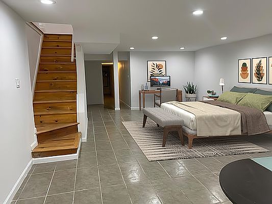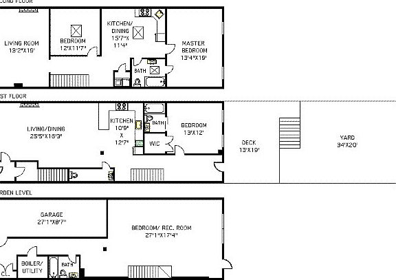 Convertible 2 bedroom DUPLEX measuring almost 2000 sf with private balcony and backyard plus free PARKING is available for immediate move-in. An open kitchen layout on the upper floor is the perfect space to entertain indoors or outdoors on the spacious deck that leads to the backyard equipped with a grill. The over sized main bedroom suite next to the deck easy accommodates a king-sized bed and has ample closet space with ensuite bathroom. The lower level with second full bathroom and washer/dryer can be used as office space , a recreation room or convert to a sleep area with easy access to the backyard. The floor plan is of the 2 family house with the duplex on the lower 2 floors. Around the corner from the Halsey Street stop for the J train (and 2 stops to the Broadway Junction stop for the A, C and Z lines) and the main commercial artery on Broadway which is conveniently lined with neighborhood restaurants, supermarkets, pharmacies and other service providers. **select images are virtually staged