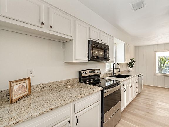 The private and large backyard also has a one car garage for a workshop or storage. The home has new HVAC, flooring, paint, granite countertops, light fixtures, and new bathrooms.