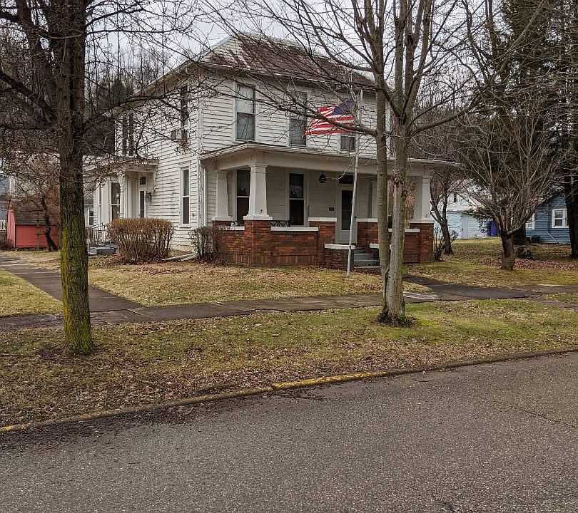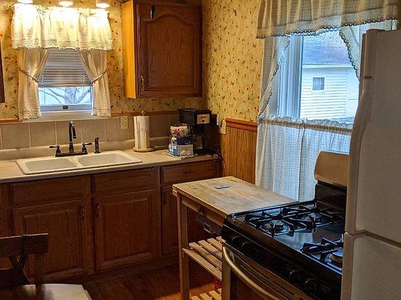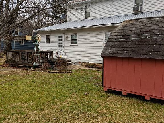 Come see this move-in ready house on a spacious corner lot. The pictures you see contain all the objects being prepared for a contents auction in March. Don't let that stop you from coming to see this lovely house! Many updates include: electric, windows, furnace/ac, water heater, restored hardwood floors, modern kitchen cabinets, restored woodwork,etc. 3-4 bedrooms, 1 bath, 1st floor laundry, living room and parlor. 3 of the bedrooms are on the 2nd floor. 1st floor could be your total living area for those who find the stairs daunting. The house features a lovely entry way with a gorgeous stairwell. The front porch will provide hours of relaxation. A back deck leads to a large detached garage with parking space. On street parking is also available. Small storage building adds to storage space. Furnace and water heater are in the partial cellar.