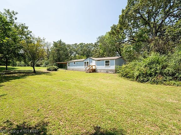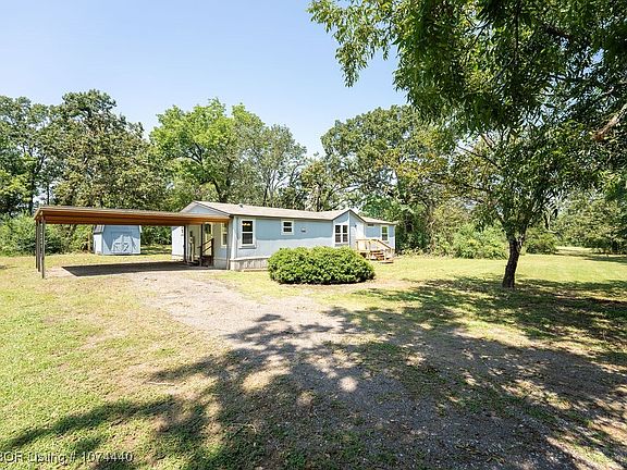 Conveniently located only 6 miles from Chaffee and 10 minutes from Fort Smith you will get country living with quick access to town. This 1568 square foot home is sitting on 3.2 acres and offers 3-beds and 2-baths. The home features a split floor plan with open-concept living area. The family room includes a wood-burning fireplace, providing a cozy atmosphere during the winter and serving as an additional heat source. This 3.2 acres property boasts beautiful mature oak trees, pecan trees, and tree-lined crepe myrtles, creating a secluded setting. Tucked away, the home offers privacy while having direct access to Hwy 255. It has been freshly updated with a newer roof, new insulated windows, new flooring, and has been freshly painted inside and out. The property also includes a carport and a 10x16 storage building with a loft. The HVAC has been serviced, cleaned, and is ready for use. It is being offered with all appliances included in the sale. Home is in it's original tie-down postion and property should allow all loan types, including FHA and VA. Home is agent owned. Schedule your showing today!
