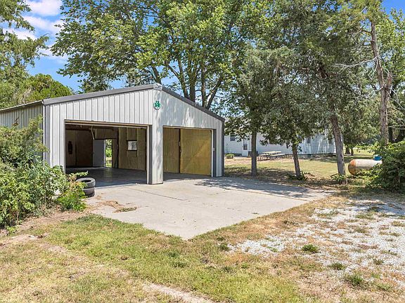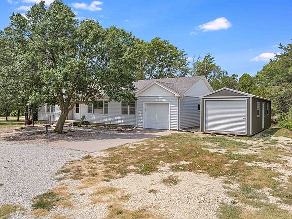 Welcome to this wonderful spot to call Home just south of McPherson. Featuring a 2 bed and 2 bath, 1390 sqft home with a partially finished basement, attached garage, and so many possibilities. The house has beautiful wood floors that you can add your own touch to. The natural light with all those big windows is a game changer. The main floor has all been recently painted throughout. Yes, both bathrooms have also been updated. The owner decided to leave the final touches up to the buyer for the basement bathroom. The home has central air and heat. The heat and water heater are ran off an owned propane tank that stays with the property. Did I mention the concrete safe room in the basement? Yep, with plenty of storage space in that basement too. Now we talk about those buildings outside and the private oasis out there. Gosh it is just lovely to sit on the porch and enjoy the piece and view when you are not tinkering in one of those outbuildings. There is a 12 x 32 shed with a rollup and a walk-in door next to the garage. Behind the home sits a 50 x 30 insulated shop with concrete floors and electrical throughout. There is one more 80 x 42 pull through round top shop equipped with concrete floors, 220 outlet, tire dismount, benches and plenty more. A workshopper's dream spot actually. The lagoon on this property was freshly dug this year and a new fence was added around. The seller even put a new pump for the well out there too. You will love the beautiful sunrises and sunsets from this location. Google does not recognize this address so for the best directions copy these coordinates to your maps 38.32002° N, 97.70486° W