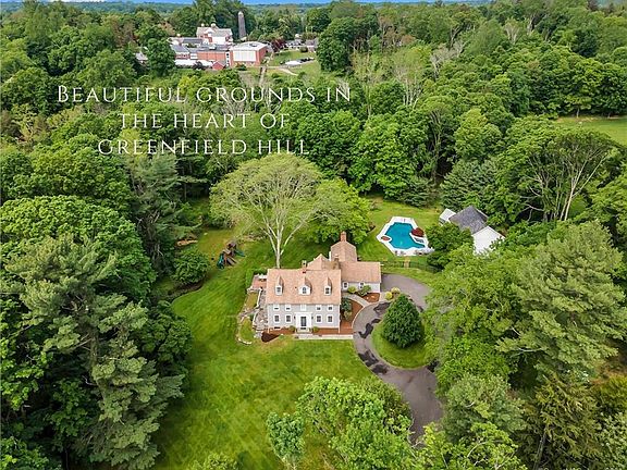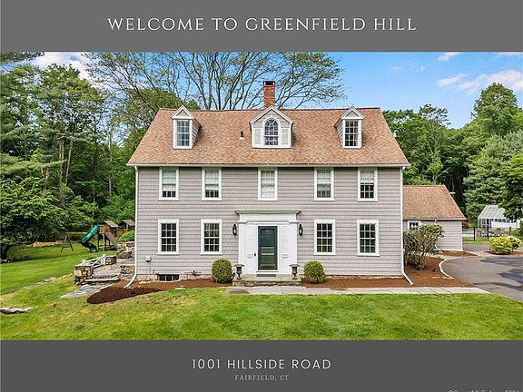 An iconic estate with historical roots (The Bradley Deacon Estate) is located in one of the most desirable spots in the shadow of Greenfield Hill's steeple! First time on the market since reimagined, this much-loved home combines yesteryear's charm & character with today's clean palette, favorite fixtures, Lutron lighting, NEST thermostats & higher ceilings. Surrounded by lush landscape, inground pool, greenhouse, quintessential barn & over 3 acres, this homestead presents a compelling package of quiet sophistication, robust quality of life & flexible living space that is priceless. The striking white kitchen with marble tops is framed by chalkboard paint and a wide-mouthed fireplace, easily slipping into a formal dining room with equally prominent fireplace, wide plank floors and living room. The LR stretches from the front to the rear of the house proudly displaying a fireplace, views of the grounds and French doors to the rear bluestone terrace. The bright wing offers a flexible space with office and vaulted Great Room w/ full bath. Could easily be in-law, studio or "pool cabana". The 2nd FL features MBR suite with wall of closets & full bath as well as 4 additional BRs, full bath incl private suite with full bath & private balcony. A walk-up attic is ready for fin space should you need it. The property, an amazing culmination of mature trees, garden beds & specimen plantings creates a close-to-town oasis that is hard to top. Additional points: Media/Great Room fireplace and barn are sold as is. There is a septic located it to the front right of the house & another septic with a manhole cover in the driveway on the right of the house near the pool fence that services the Great Room addition. The ceilings are 8 1/2 ft which differs from many antiques with low ceilings. The current owners buried all utility lines. The home is controlled by NEST programmable thermostats. Historical Info: Steeped in true Greenfield Hill history, 1001 Hillside Road (The Deacon Estate), was constructed by Loyalist British Deacon, Joseph Bradley, in 1746. Originally, the areas of Verna Hill Road from Bronson Road to Hillside Road was always called Vault Hill because the burial vault of the Bronson Family was placed at the left, just on the bend of the hill, going down toward Hillside Road. It is just 1 of 13 pre-Revolutionary war homes in Greenfield Hill (4 on Hillside). Sitting tall upon the grounds, is the home, described in the book A List of Eighty-Seven Old Houses in Fairfield, Connecticut published by the Fairfield Tercentenary Committee, 1935: Pitch roof, center door entry, two turn stairs; large; large center chimney; some painted paneling; had a floor painted like a carpet. Families: Bradley, Sherwood, Williams. History or tradition: A party of one hundred and forty, in costume celebrated the centennial in 1876. It is said that many important visitors to Fairfield were entertained at the Bradley-Baldwin Home northeast of the church. Among them were Abraham Baldwin, founder of the University of Georgia, and a promoter of the U.S Constitution; Joel Barlow, the Poet; and Talleyrand. Once inhabited by Cameron Clark Jr., the addition was designed by renowned architect Cameron Clark, while the gardens were designed and implemented by Mrs. Lucetta Warner Clark.