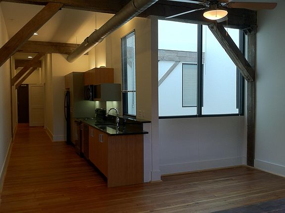 This bright 1BR apartment features a modern kitchen among the exposed wooden features and brick walls of this historic building. Beautiful hardwood floors, granite counter tops, and stainless steel appliances add to the charm. This desired location allows you to step outside and walk easily to downtown restaurants, shopping and entertainment. No smoking. No smoking. Lease Term is 12 months. Additional $125/month Amenities Fee covers water, sewer, trash removal, cable, internet and on-site fitness center. Pets conditional with a $300, non-refundable deposit. Monthly pet rent is $25 per pet. Off-street parking, if available for $60/month.