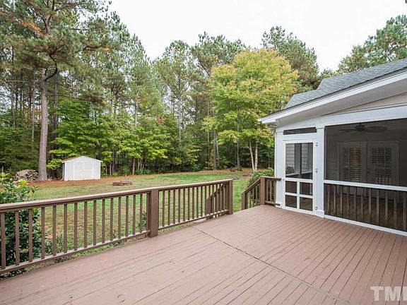 Stunning cul-de-sac home site, amazing location on the outskirts of Wake Forest. Custom built home sits majestically above road as you approach. Spacious front yard thanks to almost 1 acre lot. Side entry garage. White Oak hardwoods on the first floor that shine like new. Kitchen includes granite counter, SS appliances, gas cooktop, microwave & custom tile backsplash. Master has double tray ceiling, dual vanities, jetted tub & sep ceramic tile shower. Scrnd prch & deck out back. 20 minutes to RDU airport.