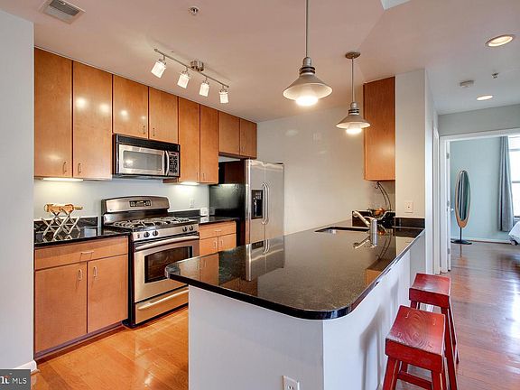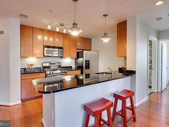 Location, Location, Location - With Parking! Brightly Lit 2 bedroom condo in the heart of DC near upscale City Center and Blagden Alley. This corner unit has windows galore. Every room is sun filled. This home boasts 10' ceilings and hardwood floors through out. The master bedroom has a large walk in closet with the washer/dryer unit tucked away and out of site. The second bedroom has its own private balcony and gorgeous sliding barn door. The open concept kitchen with stainless steel appliances, over looks the living room making this the perfect place to entertain. This unit includes an assigned garaged parking space. The building is pet friendly, includes a large indoor and outdoor common area with a spacious patio for grilling for residents. There is a concierge and security at the front door. The HVAC was replaced in 2018, and new garbage disposal. The location of this building is perfect to walk to almost anywhere, including the convention center, China Town, Mt. Vernon and Metro Center metros with a new flagship Apple Store opening near by this spring. This location has a walking score of 98.