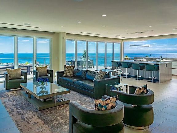 Fully furnished rental La Jolla Paradise with Ocean Views & Pool Experience the pinnacle of coastal luxury at La Jolla Corona Estates. This multi-level 6BR/6.5BA retreat spans 5,700 sq ft and features panoramic ocean vistas, modern elegance, and resort-style amenities. Enjoy multiple terraces, fire pits, and a sparkling pool surrounded by palms and endless blue skies. The open-concept layout offers two living areas, fine art, a grand piano, and accordion doors that blend indoor and outdoor spaces. The chef's kitchen boasts stainless appliances, wine fridge, stone island, and bar seating, while the formal dining area seats ten beneath a statement chandelier. Most bedrooms capture ocean views two queen rooms share a bath upstairs; four ensuite bedrooms downstairs open to a covered terrace. Designed for comfort with Toto bidets, A/C, in-home laundry, and driveway parking. Bask in radiant sunsets and luxury living in one of La Jolla's most desirable neighborhoods. TOT 629231 | STR-08681L This is a furnished seasonal rental. Pricing varies by length of stay and seasonality. Published amounts are range estimates only. Final pricing, fees, and availability are subject to change until a fully executed lease agreement. Please inquire for exact quote and terms.