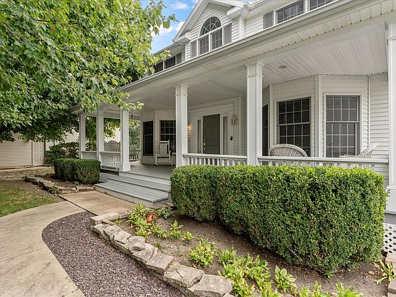 Nestled on the lake in Mahomet, this stunning 4-bedroom, 2-story home offers over 6,000 square feet of luxurious living space designed for comfort and style. An expansive front porch welcomes you into a grand entryway featuring a striking staircase flanked by an oversized dining room and a cozy living room with fireplace. At the heart of the home is a chef's kitchen with an eat-in area, walk-in pantry, and abundant cabinet and countertop space. The adjoining family room with brick fireplace flows into a serene sunroom overlooking the water. Upstairs, the massive primary suite boasts a fireplace, spa-like en suite bath with double vanities, soaking tub, separate shower, and a generous walk-in closet. Three additional bedrooms, a full bath, and a convenient laundry area complete the upper level. The walk-out basement includes a spacious rec room, workshop, full bath, and ample storage. Take in breathtaking lake views from the multiple porches, patio, or private balcony-this home is truly a rare lakeside retreat.