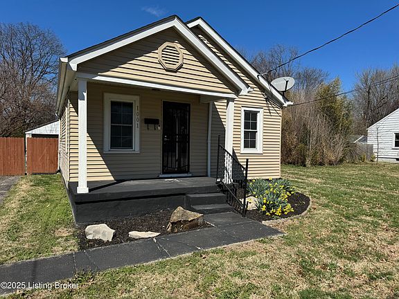 Welcome to this very nice cozy home located at 1001 Livingston Ave. You'll love the huge, fenced back yard. It's almost double the size of most lots in the neighborhood. Nice front porch. This home has lots of updates including newer flooring, paint, plumbing and lighting. 2 bedrooms, 1 bath, kitchen, living room and laundry room. Lots of natural lighting. Outside, you'll find a deck (8 X 8), plus a 2-car detached garage (24 x 25.6). Great location, close to downtown and UofL.