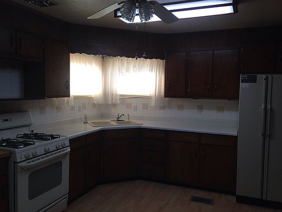 Large three bedroom one and a half bath home with garage, shed and fenced in yard facing north east school offers central air, stove, refrigerator, washer and dryer with carpet and laminate flooring.