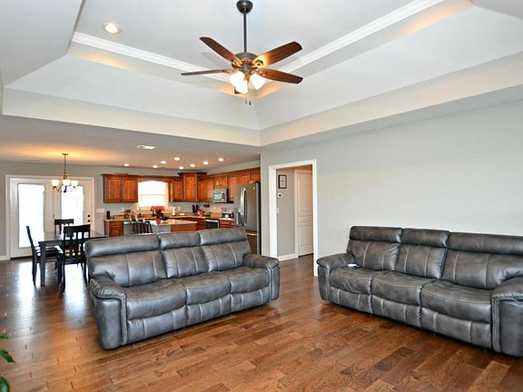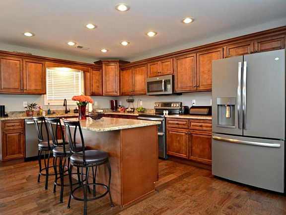 Beautiful brick and stone home. Featuring 4 bedrooms, 2 baths, eat-in kitchen with granite counter tops with custom cabinetry equipped with a full compliment of GE Slate Appliances including refrigerator, double oven range with convection oven, dishwasher and microwave, master suite with master bath and walk-in closet. Exterior features a covered deck off kitchen, covered front porch, extra long driveway leading to a 2 car garage. All this sitting on .97 of an acre lot.