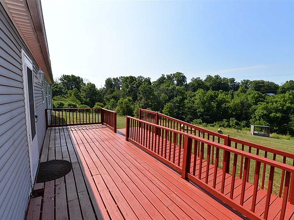 Upgraded Double Wide on 3.41acres*3BR/2BA*Country Atmosphere*Open Floor Plan*Eat-in Kitchen w/ Island, Counter Bar, Tons of Cabinet Storage*Master Bedroom w/ adj bath*Laundry walks out to Large Deck w/ Walkway to Detached Garage*Beautiful private views of Woods below*36x24 Oversized Garage w/ Loft Storage*Located at the end of a Cul-de-sac Street*Public Water*All Appliances Stay w/ home