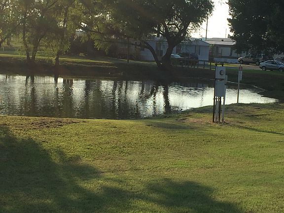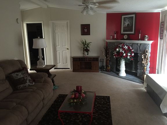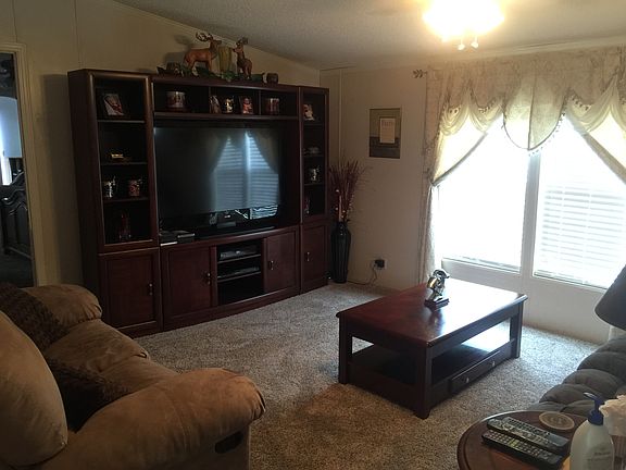 Large 4 BR/2.5 BA double wide offering 2,352 sq./ft. of living space! Mobile home is in a mobile home park were lot is leased. Home offers open floor plan. Master has a sitting room w/ sliding door that opens to a nice deck. Enjoy the beautiful view of the park area & pond w/ fountain! Large kitchen features lots of cabinets, a island, new microwave & smooth top stove. Separate laundry rm w/ a half bath next to it. Double doors open into the second living room w/ a wood burning fire place. 2 car carport!