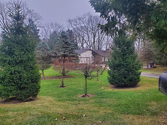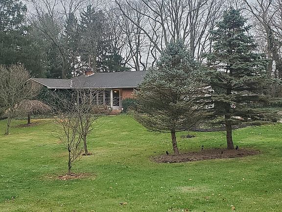 The lot, setting & view you've been waiting on! The yard is large and breathtaking. Trees & more trees! Opportunity awaits you on this wonderful ranch floorplan with two walkouts in the lower level! As you enter through the large foyer you see the oversized living room w/stone fireplace & hardwood floors ready to finish to your taste & a front morning room perfect for morning coffee! The formal dining room with hardwood floors flows into the kitchen with eating area. There are four bedrooms, three with hardwood floors and the large front bedroom has new carpet. There's two full and two half baths. The huge family room with timber frame ceilings has a floor to ceiling brick fireplace and wet bar is 600 sqft. The partially finished basement w/wet bar & half bath has 2 walkout areas. Show it!