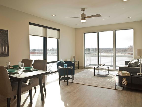 - Exterior features: $155 per month for attached garage. $155 per month for surface lot across the street., Availability 24 Hours, Heating: Electric, High-speed Internet Ready, Lawn, Online Maintenance Portal, Online Rent Payment, Pet Washing Station, Picnic Area, View Type: Water, Water Feature, fitness studio, on site restaurant w/ room service, recreational boat launch for river