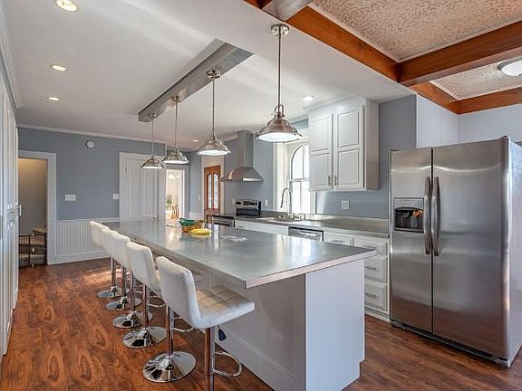Step into this completely refinished historic 4 bedroom 2 bathroom home with 10' ceilings on both levels, arched windows, 2 fireplaces, stainless steel counters appliances and island. This home has been meticulously cared for by the previous owner with new HVAC in 2004 and a water proofed basement. Current owners have done these updates from 2014 to present date: pex plumbing, updated 200 amp electrical service and wiring, radon system, garage roof, 2 water heaters, duct cleaning, vinyl fence and storage shed. The home has also had extensive repairs made to the plaster, wood flooring, interior paint, bathrooms and new main level laundry with mud room. This is an enormous home sits on a corner lot with a circle driveway. Come take a look at this Landmark home, it will not disappoint.