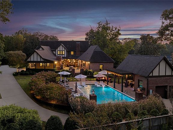Step into timeless elegance with this stunning 1930s Tudor-style estate, meticulously renovated in 2016, nestled on approximately 2.5 private acres. Located just 3/4 mile from Downtown Opelika, the 4,667 sq ft main home features 4 bedrooms, 3.5 bathrooms, a spacious sunroom, formal office, and a butler’s pantry. The kitchen stuns with a large custom quartz island, porcelain farmhouse sink, and custom handmade subway tile backsplash. The main-level master suite offers comfort and privacy, while upstairs includes the original master bedroom with ensuite and sitting room, two guest bedrooms, and an additional full bath. The 1,052 sq ft guest cottage includes a 2-car heated/cooled garage, 1 bedroom, 1 full bath, and kitchenette. The backyard is a true oasis with a heated infinity saltwater pool, woodburning fireplace, enclosed workshop, and pool pavilion with a half bath. A must-see blend of timeless character and thoughtful luxury. Additional features/upgrades available upon request.