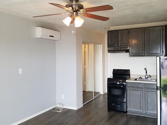 Are you looking for a downtown location with great finishes on a realistic budget? How about a recently remodeled studio with high end finishes! Beautiful wood finish laminate flooring, dual pain windows, stainless steel sink with extendable faucet, ceiling fan, curtains, paint, shower curtain, glass top stove, refrigerator and maybe most importantly of all an ultra high efficiency air conditioner that is super quiet. This is an upstairs unit. :-) The location is great for all downtown activities! If you would like to have an application, please send me an email. Thank you, Jerry Owner pays water, sewer and trash. Tenant pays power, internet, cable.