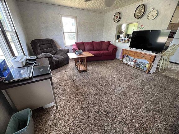 This 2 bed 1 bath home features 2 living spaces, gallery style kitchen, & spacious bathroom with single sink & walk-in standing shower. Original hardwood floors can be seen in the primary bedroom & under the carpeted areas. The laundry room is located within the home & offers additional storage space. Home located on a large corner lot with carpot & workshop. Additional space for RV parking, if needed. New roof in 2025. Come & see today!!