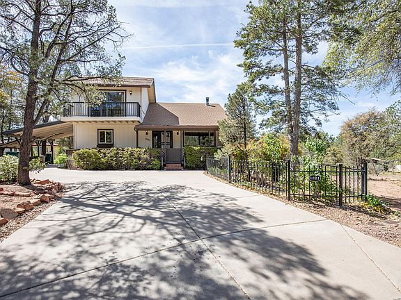 Nestled in a quiet cul-de-sac in the desirable Payson North area, this Chalet-style home is enveloped by a wooded wonderland of majestic tall pines. Property features a sprinkler system and charming front deck, perfect for unwinding and taking in the serene surroundings. The property also includes an attached covered carport, a wood storage area, and a fenced garden with a dog run, ideal for pets.