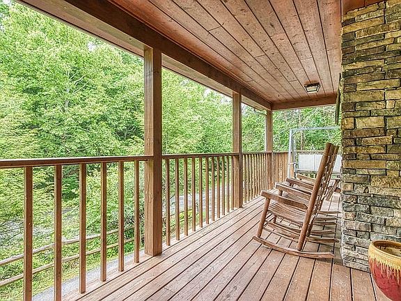 INCOME PRODUCER! This 3 bed/3 bath cabin has 1542 sqft of living area. Located in a cabin resort directly across the street from Soaky Mountain Water Park and less than one mile from the new Publix Shopping Center, this neighborhood features private streets with city water/sewer AND county natural gas piped right in! Plenty of parking and NO STEEP ROADS. Take a step up to the front porch and enter paradise. The main living space features a full sized gas log fireplace for you and your guests to enjoy on those Smoky Mountain winter nights. The kitchen is very spacious including lots of granite counter space, updated appliances, bar seating, and plenty of elbow room to cook for everyone! Adjacent to the kitchen is the dining space with a table to seat up to 4 more people. On the main floor, there are two large bedrooms, each with its own private full bathroom featuring granite around the sinks as well. Head upstairs to the third bedroom, currently equipped with two bunk beds to sleep up to 4 additional adults or children. Your third full bathroom is also on the upper level for easy access to your upstairs guests. On the spacious screened-in back porch, you will find plenty of seating and a roomy hot tub, as well as space for the pets to stretch their legs. Lots of storage throughout. Being sold FULLY FURNISHED This one has done amazing on rentals and is projected to hit $70k by the end of this year with its current rental company.