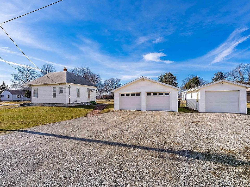 GARAGE LOVERS dream. Low cost living with lots of garage space. This home would be perfect for those downsizing or for snow birds. The home sits on a large corner lot, has a concrete slab ready for a dog kennel, 2 car garage is fully insulated and heated, the 2nd garage is 12x24 and will house your classic car or side by side. You don't want to miss this low cost cutie!