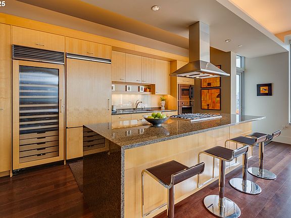 Unique luxury condo in the highly desirable LEED Silver-rated Metropolitan! Hardwood floors and walls of windows make for a handsome living space. The open plan’s clean lines maximize the stunning views. This extraordinary home includes both a generous south-facing balcony and a spacious terrace on the SW corner - attractive and special spaces for your Pearl District lifestyle! A drip irrigationsystem supports the established terrace plantings, and landscape lighting highlights this outstanding feature! The gas fireplace and built-in Sound System enhance your every mood. The well-appointed kitchen is a joy! The space is designed to support easy living with the chef's island, full-size wine fridge, built-in appliances and ample storage! Painted in sophisticated designer colors, this 3-bedroom home is the perfect urban retreat: walls of windows for the cityscape, and interior gallery walls to showcase your art collection - along with custom blinds & drapery to deliver that ultimate calm. Welcome home! The Primary bath is an oasis of ablutions with separate shower and soaking tub, double sinks, and heat-on-demand from beneath the vanity - heaven! Excellent storage by California Closets for all 3 Bedrooms. The laundry room includes a built-in Ironing Board and even more cabinetry for everything you need to tuck away. There is also a sizable storage unit for everything you don’t need in the condo proper. You'll love your new vista which includes Mt. Hood, Downtown, and the West Hills. This is a uniquely wonderful home in a desirable building. The Meropolitant offers guest suites, gym, wine storage, as well as indoor/outdoor social spaces. You will love living here!