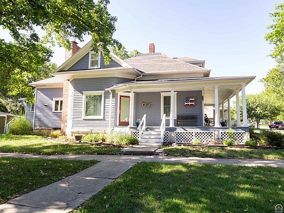 What says "welcome home" like a wrap around porch?! This maintained 4 bedroom one bath has been updated and is move in ready! Inside the front door is the living room looking into a large formal dining room. The kitchen has plenty of cabinet space and kitchen appliances stay! The dining room has a door onto the wrap around porch and a wood burning fireplace. With the size of this room, it is versatile and could be used as the living room if you prefer or a sitting/dining area combo. The wing off of the kitchen includes 2 bedrooms and a bathroom, the 3rd main floor bedroom is off the living room with a large closet. Upstairs find a family room and a bedroom the spans the front of the home. 2 unfinished rooms for storage, a future bathroom, office or 5th bedroom. Main floor laundry for the win! The detached garage has a covered patio on the East side, giving some outdoor flex space to grill out of the rain, work on a project or just sit in a patio chair. Adjoining the garage is a storage area for your gardening items, etc. This home has been used as an extended stay (furnishings not included but could be purchased) for approximately the last year, financials available upon request.