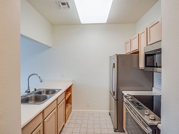 Move-in ready Oppenheimer Place condo! This second level unit has brand new carpet and fresh paint throughout, new stainless appliances within last six months, and new electrical outlets. Step into a great layout featuring an open kitchen overlooking the living area. The kitchen has tile flooring and features new stainless appliances including electric cooktop stove, microwave, and refrigerator. The living area offers plenty of bright space and a large slider door to access the covered tiled patio which looks out to the Jemez Mountains. The bedroom offers some nice mountain views, a good-sized closet, and ceiling fan. The large full bath has tile flooring and ample counter space. A laundry space with a stacked washer and dryer is well located in the hallway near the bedroom and a nice-sized hallway closet provides added storage. This unit stays comfortable in the warmer months with central a/c. Amenities in the complex include: game room, common areas, exercise area, and underground parking. Optimal location near the senior center, public library, downtown, historical sites, parks, aquatic center, and more. This is a really well maintained unit and will make a great place to call home!