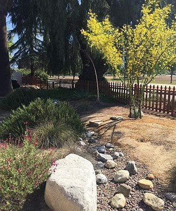 Charming home on spacious lot with RV PARKING and 2 driveways!! This landscaping was made drought resistant a few years ago before it became popular so many of the plants are mature. The living room is very nice and the fireplace has that old world look. New dual pane windows, new kitchen, indoor laundry room and a really nice yard welcome you home. There are 2 outdoor patios, a very cute tuff shed, and a large space to play bocce ball or badminton. The location is great! Across the street from a park, nearby to schools, police department and City Hall. Only a couple of minutes drive to the freeway and close to shops.