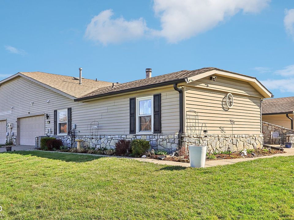 Move right into this updated, 55+, low-maintenance home on a desirable corner lot! This is the one you've been looking for. Featuring a fantastic open floor plan, this home offers newer carpet and LVP flooring throughout, providing both style and comfort. You'll love the updated kitchen with new cabinets, lighting, hardware, and a walk-in pantry, perfect for all your storage needs. The spacious dining room is open to the kitchen, with ample seating at the counter for casual meals or entertaining. The bathrooms have also been updated, adding a fresh, modern touch. A two-car garage provides plenty of space for parking and storage, and the attic offers additional storage for your convenience. Step outside to enjoy the private patio, perfect for relaxing or entertaining while taking in the fresh air. Conveniently located within walking distance to a golf course and just minutes from restaurants, grocery stores, gas stations, and scenic walking paths, this home offers both comfort and convenience. With easy access to I-65, getting around is a breeze. Plus, with exterior maintenance handled by the HOA, you can enjoy a truly carefree lifestyle in a prime location. Don't miss out on this fantastic opportunity! **Home warranty provided by seller.**