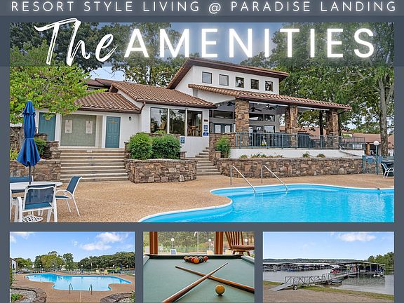 Welcome to Paradise Landing -- A Turn-Key Waterfront Retreat in the Heart of Table Rock Lake!This rare 3 bed / 3 bath gem in Kimberling City's premier waterfront community offers low-to-no maintenance living & loaded w/ high-end upgrades, modern comforts, & lake views from nearly every room.Enjoy walk-to-the-water access, a transferable 10x30 boat slip lease, & resort-style amenities including a sparkling outdoor pool, clubhouse, gym, library, & peaceful walking trails along the shoreline.Inside, you'll find over 2,200 sq ft of thoughtfully designed living space featuring tigerwood bamboo flooring, granite countertops, new carpet, Samsung stainless appliances, & newer oak cabinetry. The spacious chef's kitchen offers generous prep & entertaining space w/ breakfast nook that opens up to main level living area!The main-level living room boasts vaulted ceilings, abundant natural light, a cozy pellet stove, & direct access to the upper-level covered deck--perfect for entertaining or enjoying morning coffee w/ lake breezes & wildlife.The private owner's suite is thoughtfully separated from the rest of the home for ultimate tranquility w/ dual walk-in closets, a spa-like bath w/ custom tiled shower, dual vanities, an attached office or nursery, & its own private deck access w/ water views.Downstairs,2 guest bedrooms offer walk-out access to a covered patio, & 2nd living area provides room to unwind or host extended family. All bedrooms have direct access to outdoor spaces, offering seamless indoor/outdoor living.Add highlights include a 2 car garage, ample storage, stairs to the backyard from the garage, & an avail golf cart for $8k. Plus--it's turn-key furnished, w/ all furniture, appliances & TVs included!By land, you're just 2 min to downtown Kimberling City--groceries, restaurants, spas, & seasonal farmers markets. By water, you're min from floating restaurants, scenic coves, & the best fishing on the lake. Your lake paradise awaits!