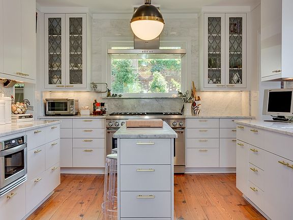 Handsome 4 bed/4bath brick home with 1BED/1BATH 2 STORY POOL HOUSE and INCOME PRODUCING 1 BED/1 BATH COTTAGE. ALL RENOVATED .Beautiful pool with fully landscaped property. Main house and cottage have PRIVATE COURTYARDS SURROUNDED BY GARDENS with blueberries, pomegranate trees, kiwi, lavender, bulbs, Japanese Maples for 4 season color, produce and flowers. LARGE PICTURE WINDOWS bring the outside in and provide spectacular views flooding the home with light. Kitchen has 6 burner gas range with marble counter tops and original heart pine floors. The large family room has a fireplace on both ends and large brick patio off back overlooking large back lawn, bocci ball court, quaint chicken coop and more gardens. Two upstairs bedrooms have balconies as well the owners bathroom. Gated brick parking court with two car garage. Whole property completely surrounded with brick wall, beautiful gates and evergreens for privacy. Truly a magical home to raise a family.