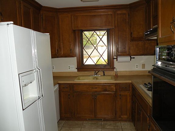 All brick home on corner lot, some new paint, large GR w/fireplace with gas logs, built-in bookshelves, terrace, carport, 16x16 detached wired storage building, tile baths. A lot of house for the money!