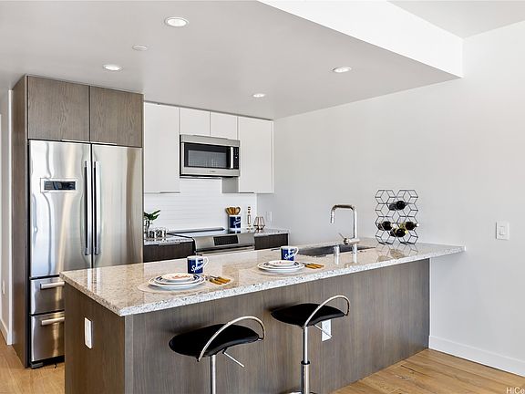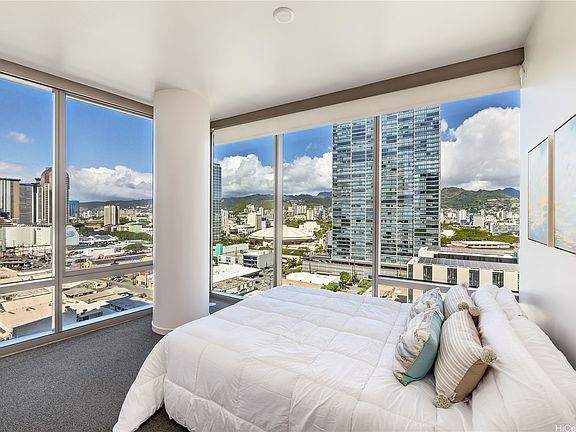 A prestigious and highly convenient high-rise condominium located in the luxurious Ward Village. This unit offers 2 bedrooms, 2 bathrooms, and two separately deeded assigned parking stalls(on the 3rd and 6th floors), along with deeded storage unit conveniently located in front of the parking area. The additional parking and storage are both rentable and sellable separately. Enjoy direct access to Whole Foods Market from Ae'o, and proximity to Ward theater and Ala Moana Center. It also offers luxurious amenities including a ocean-view swimming pool, a lap pool, a state-of-the-art fitness center, a rooftop sky terrace, a BBQ area with dining cabanas, a media room, a dog park, guest suites, and more. The unit is in excellent condition with brand-new paint and is a breezy corner unit. See your future home - this a must see!!