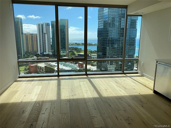Never before lived in, Ae'o Studio, 1 bath, 1 parking condo located on the Diamond Head side of the building. Bosch kitchen appliances, washer/dryer, central air conditioning, floor to ceiling windows. Amenities include BBQ, fitness center, pool, playground, dining room, meeting rooms, theater, roof top deck. Access to Whole Foods market located on the ground floor. Rent includes water, basic cable TV, internet, sewer, trash chute and 1 assigned parking space. No furniture included. Tenant pays electricity. Rent: $2500 per month includes tax. Security Deposit: $2500. Application Fee: $25 per adult. Term: 6 month minimum lease. Absolutely no pets, no smoking.