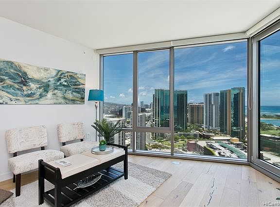 The epitome of luxury urban living in the heart of the award-winning Ward Village master plan development in Kakaako. Gorgeous high-floor 2-bedroom/2-bath unit located on the preferred Diamond Head side. Walls of windows boast stunning panorama ocean, city & mountain views. Exquisitely appointed with hardwood floors (carpet in bedrooms), stainless steel appliances, quartz counter tops & custom shades. What makes this unit even better: one of the best parking locations in the building! The two parking stalls are located on the mezzanine level, completely isolated in its own bay without cars on either side and right next to its huge storage unit. Privacy and convenience.