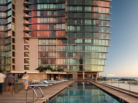 AEO condominium studio with 1 covered parking. Desirable ocean facing unit. Beautiful ocean views. Amenities include party room, guest rooms, 2 swimming pools with dedicated lap pool, jacuzzi, rooftop terrace, bbq, indoor gym with ocean views as well as outdoor workout spaces, and sauna and steam room. There is also surfboard and bicycle storage as well as a dog-run area, covered dining cabanas, private dining room with caterer's kitchen, children's play area, private movie theater and a lounge room for events and parties. Plenty guest parking and walking distance to beach, Ward Village and Ala Moana Center. Basic cable tv, internet, water, gas included. Available now for at least 6 month lease. No pets allowed. No smoking allowed.