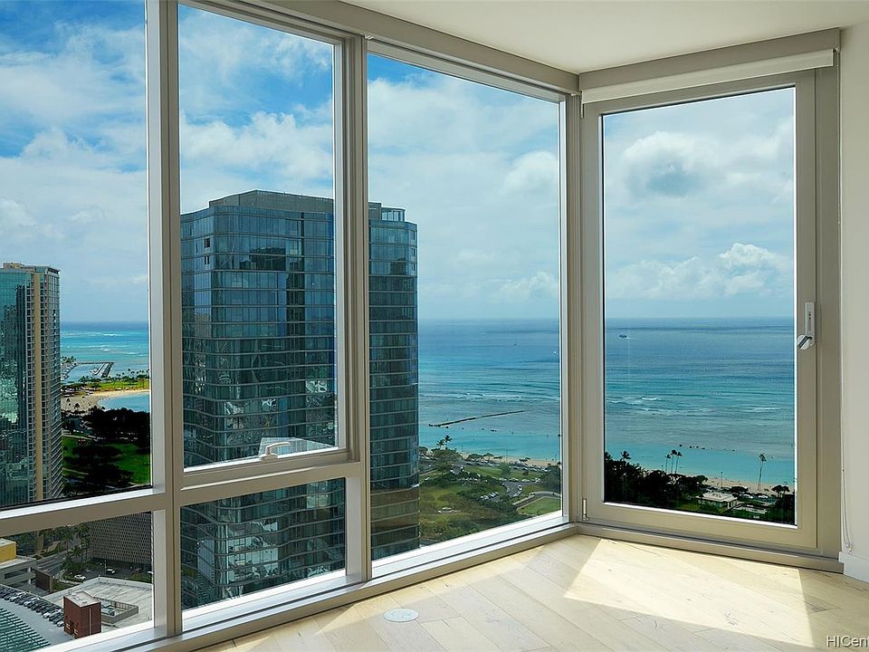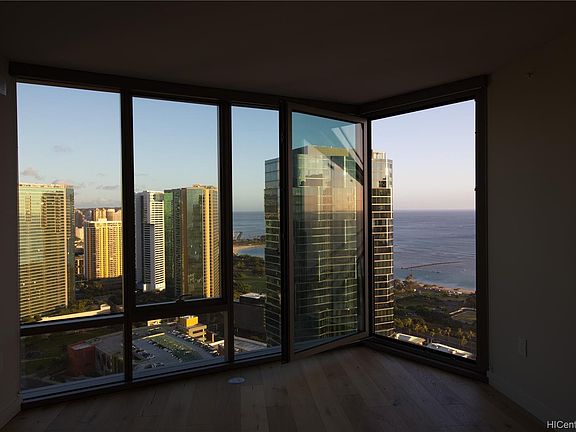 Be the first to live in this stunning high floor new condominium in Ward Village. Spacious 2 bedroom (both w/ ocean views), 2 bathroom unit. 34th floor, preferred Diamond Head/ocean facing. Hardwood floors in living areas, carpet in bedrooms. New window coverings will be installed throughout. This unique unit includes large storage locker. One of the two parking stalls has an EV charging station! Private entrance into Whole Foods from 2nd floor. Amenities include: 2 pools, jacuzzi, large climate controlled gym & outdoor workout space, cabanas, movie theater, guest suites for rent, dry sauna, steam room, kids' playground, Sky Terrace, bike & surfboard storage, & more! Available now for a 1-year lease w/ option to renew. Looking for tenant w/ good credit & references. Sorry, no pets.