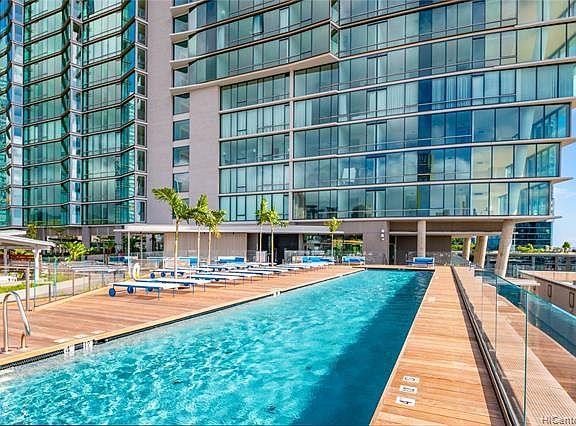 This is move in ready high floor 1 bedroom 1 bath with ocean, city and mountain view. High efficiency central AC and window blinds. The unit also has a 55 sqft storage room (SM-36). Fresh interior paint with desirable P4 parking close to elevator and a storage room conveniently located on level 1M. Ae'o amenities included: fitness center, 2 swimming pools, jacuzzi, massage rooms, kids play ground, 3 guest suites, BBQ cabana, chef kitchen, theater, karaoke room, dog park as well as Surf boards and bike storage room. In addition , residents have direct access to whole foods on P2.