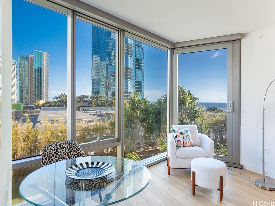 This 08 floor plan is the only one bedroom floor plan in the highly desired Diamond Head side with beautiful ocean views. This home comes with premium Bosch stainless steel appliances, countertops, hardwood floors, double sinks in the bathroom, and a large walk-in closet. Floor-to-ceiling glass bay "wing" windows with motorized shades showcase the breathtaking Diamond Head and ocean views. Parking space is conveniently located on level 2 and a storage room (S2-30) is included. Level 2 connects directly to Whole Foods Market. This home features resort-like amenities such as a concierge, rooftop terrace, lap pool, fitness center, theater, children's play area, guest suites, outdoor barbecue, dining cabanas, dog-run area, and more. Ae'o is one of the latest additions to Ward Village, a new condo featuring the best of urban living in the heart of Kaka'ako. Centrally located and close to theaters, dining, and world-class shopping at Ala Moana Shopping Center.