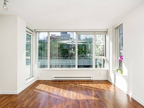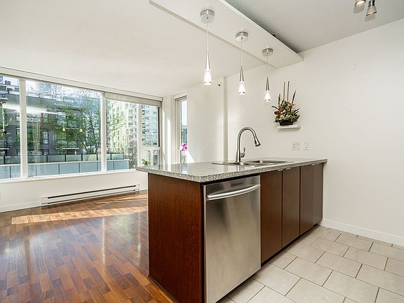 This centrally located, 1 bedroom and den condo, Miro by Polygon, is a must see! Open concept floorplan with spacious living room, kitchen with stainless steel appliances, gas range, granite countertops, updated lighting and modern finishings. Enjoy the fully enclosed solarium with an abundance of natural light. Large bedroom with walk-in closet and ample storage. Direct access to all local amenities including transit, Yaletown shopping and the seawall for a sunset stroll. Complete with in-suite laundry, exercise centre, party room with billiard lounge, visitor parking, storage unit and courtyard garden. No smoking, no parking. One year lease required.