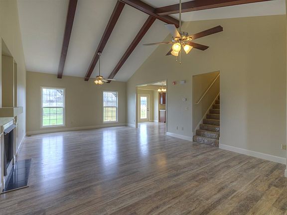 Beautiful home on huge half acre lot in highly desirable Running Brook subdivision! Stunning flooring and rustic overhead beams which set off vaulted ceiling in family room. Cozy up in front of gas log fireplace with built in shelves on either side. Large kitchen with TONS of cabinets (matching island to be installed - not shown in pics) and you'll love the large tiled shower in master bath. 1 year builder's warranty means you just move in with no worries about anything! Eligible for 100% USDA loan (some restrictions apply - ask your lender). Rear and side yards to be seeded - fresh sod laid in front yard. Although just minutes from downtown Lawrenceburg, home is just outside city limits so you don't pay city taxes. Features affordable KU electricity. Call today for your private showing!