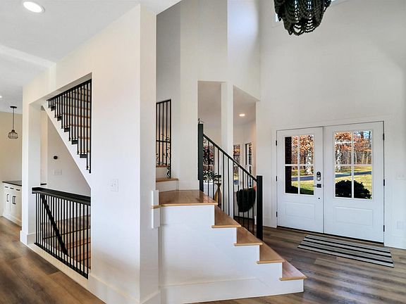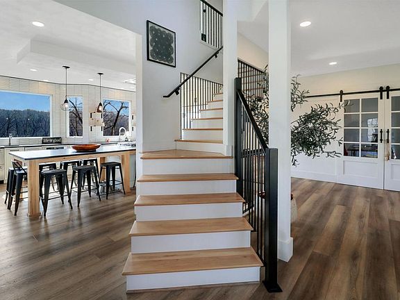 A private luxury D51 Washington retreat awaits at this remodeled home surrounded by 14 acres. The blacktop drive winds through the picturesque property and over a tranquil creek that leads to a gorgeous, quality built home. The magazine worthy interior exudes a clean, casual modern vibe with loads of oversized windows, neutral colors, and warm woods. The open main floor plan is anchored by the modern staircase to the home's upper and lower levels. The great/dining room combo features vaulted wood beamed ceilings and a gas fireplace with custom distressed wood mantle. The incredible kitchen showcases a hearty island with iynx granite countertops, full wall tile backsplash, incredible pictures windows, and professional KitchenAid appliance package. The back drop zone offers more built-in cabinetry, laundry room, and guest bathroom off the oversized heated 3 car garage. The main floor office with double barn door entrance is just off the front flex room, perfect for a sitting room or playroom. The upper level is home to 4 bedrooms including the primary suite with private balcony overlooking the wooded views, luxurious bathroom with huge walk-in shower, and custom fitted walk-in closet. The finished lower level offers plenty of rec space for your needs. Outdoor entertaining is a breeze with expansive decking and patios overlooking the breathtaking backdrop. The 54x42 outbuilding has a gravel floor and oversized single door. Make your dreams come true at 1001 S Cummings Lane.