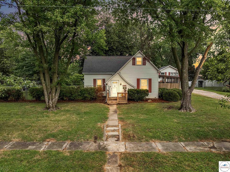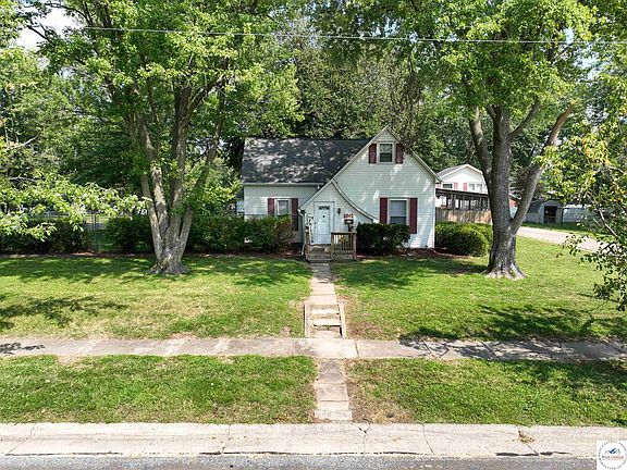 This classic 1.5-story home brims with charming character and is a must-see! Curb appeal shines with the Tudor-style front entry and a manicured lawn. The spacious living room boasts a vaulted ceiling adorned with rustic beams. Those beams carry on into the kitchen, which features a built-in pantry with glass doors and a corner sink framed by large windows. Adjoining the kitchen, the formal dining room features built-in bookcases. The spacious main floor primary bedroom offers a double closet and an atrium door leading to a private deck. Upstairs, two additional bedrooms and a bonus space that could serve as an office provide extra versatility. Outdoor living is enhanced by the covered concrete patio, partially screened and equipped with ceiling fans. A long concrete driveway ensures ample off-street parking, and the 1-car detached garage with an upstairs studio apartment—accessible by a separate exterior entrance—holds exciting potential. With a few updates, it could become a great hangout space or even a profitable VRBO. The large shady corner lot includes a chain-link fenced backyard, and the storage shed is also included. So much to explore—schedule your tour today!