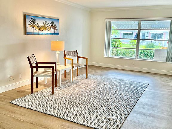 Move right in to this updated Edgewood (Attache model) on an oversized corner lot with the fabulous location of walking distance to Clubhouse 1. All new Kitchen with hood and wine cooler and renovated bathrooms. This house features a shaded back patio for quiet privacy and a front patio for neighbor greetings and enjoyment of the Gulf Stream breezes. Your spacious, light filled and Florida home awaits you- Association offers 3 clubhouses, 3 pools, whirlpool spa, gym, unlimited golf ($100.00 fee) and countless recreational activities. Minutes from shopping, restaurants and beach. An active and friendly community. Rec lease paid off.