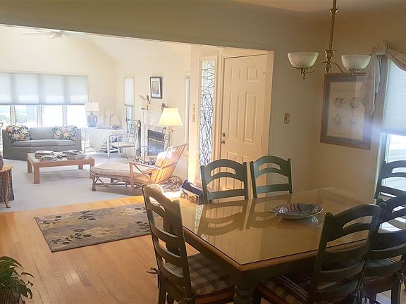 Seller will offer a $6000 credit at closing for Buyer's personalization of property post closing. Three story corner townhouse overlooking the beautiful meadows and waterways just a few blocks to town. This property feels like a single family home with private garage, vaulted ceilings, double sliders, plenty of windows and is the most spacious layout in Cape Meadows. It offers a desirable location being a corner unit, meadow side with the pool being very close. The first floor has a large living room with gas fireplace, and vaulted ceilings. There is a separate dining area, powder room and a kitchen with additional den with built in bar and double sliders leading to an extremely large deck overlooking the meadows. The second floor has a large master suite with closet and updated bathroom with shower and separate tub. This floor has two addition large bedrooms, hall bath, and laundry. The third floor has a full bathroom and 4th bedroom offering very distant meadow views. Lovely built in bookshelves in the 3rd floor landing. There is a large storage closet for storage. Crawl space has new battery backed up sump pump and vent doors.