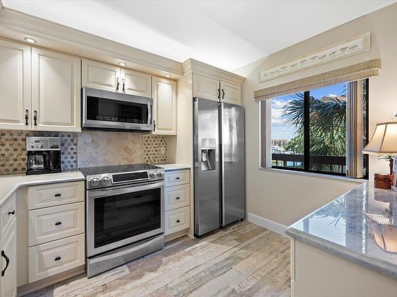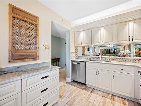 Stunning Intracoastal front corner unit at Marina at the Bluffs with an expanded balcony for breathtaking sunset views. Italian Marazzi tile, high-end appliances, and quarzite countertops in the kitchen. A/C and roof recently updated. Spacious laundry room with office, custom wood cabinets, and stylish touches like Swarovski crystal hardware. Community amenities include four pools, tennis courts, and Bocce Ball small pets are welcome. Just 0.8 miles from the ocean and close to Publix, pharmacies, and restaurants. Embrace coastal living in this impeccable home!